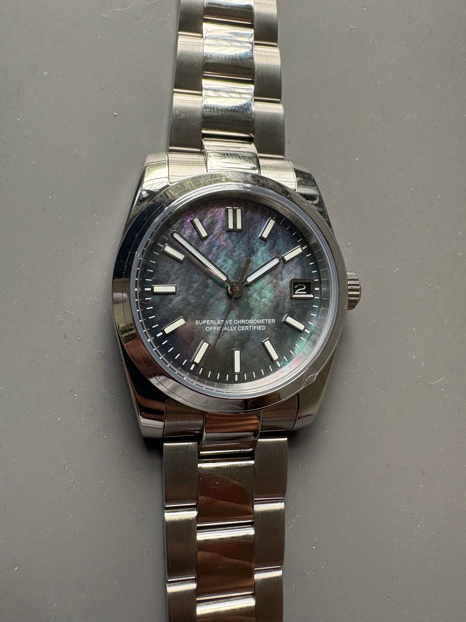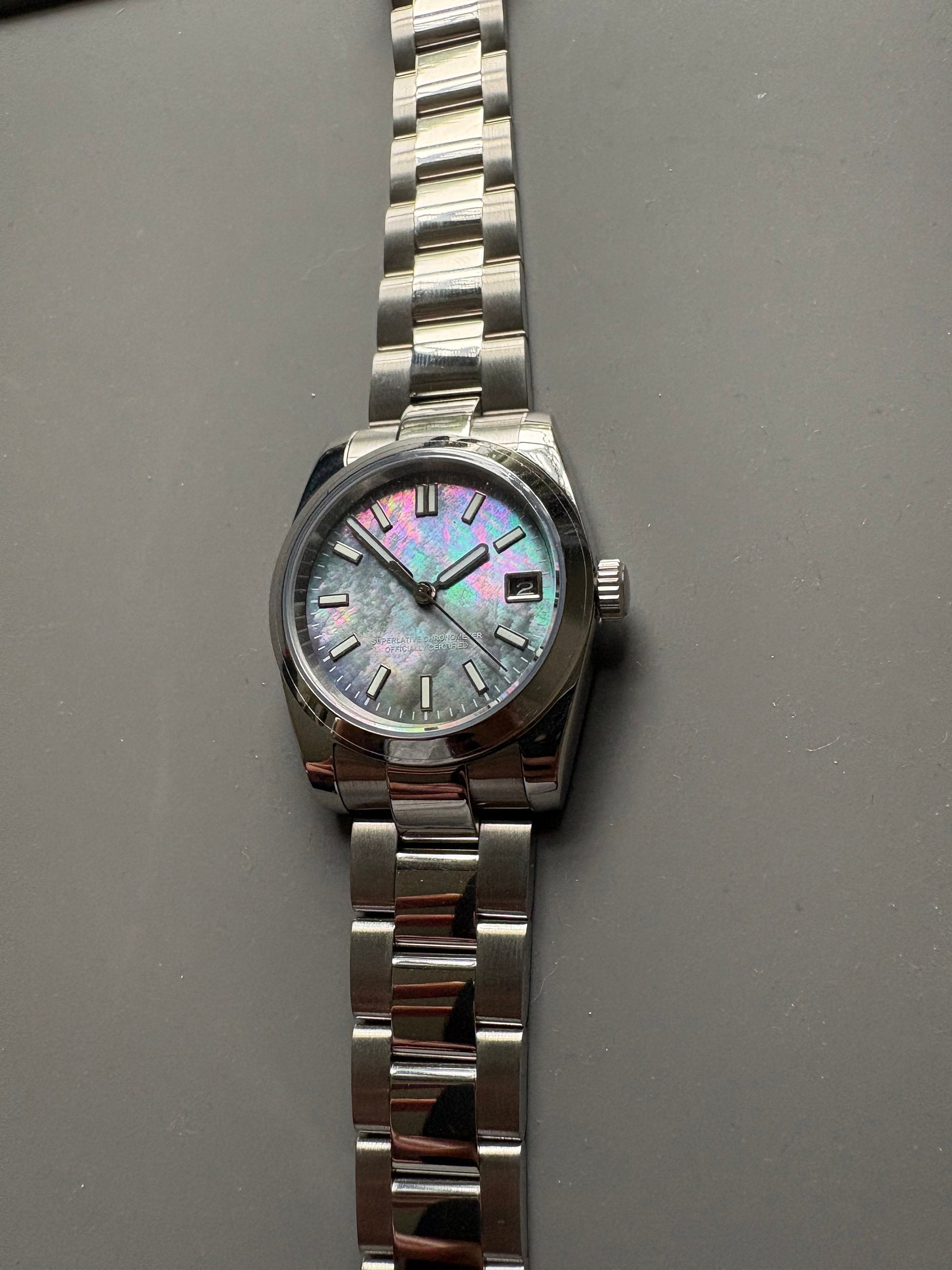 36mm Mother of Pearl Date Master watch Automatic - Graduation - Wedding - Birthday - Dress watch - MOP -
