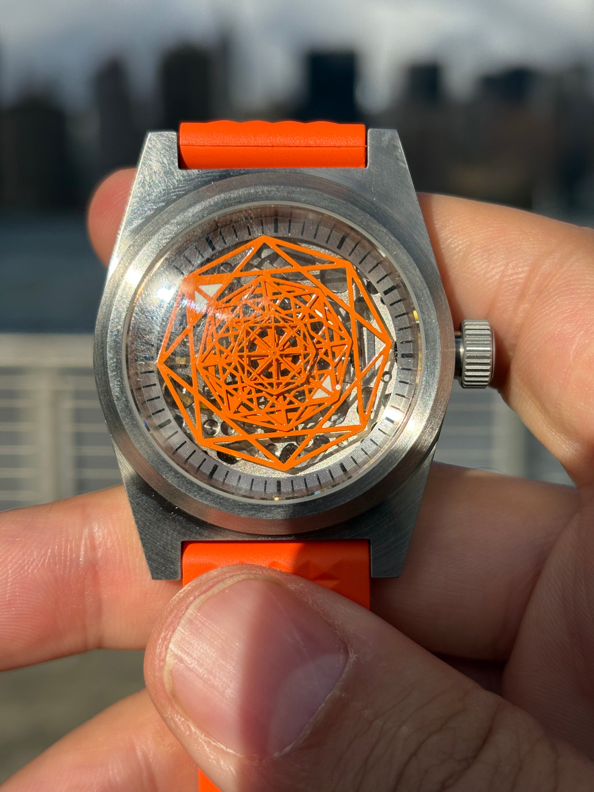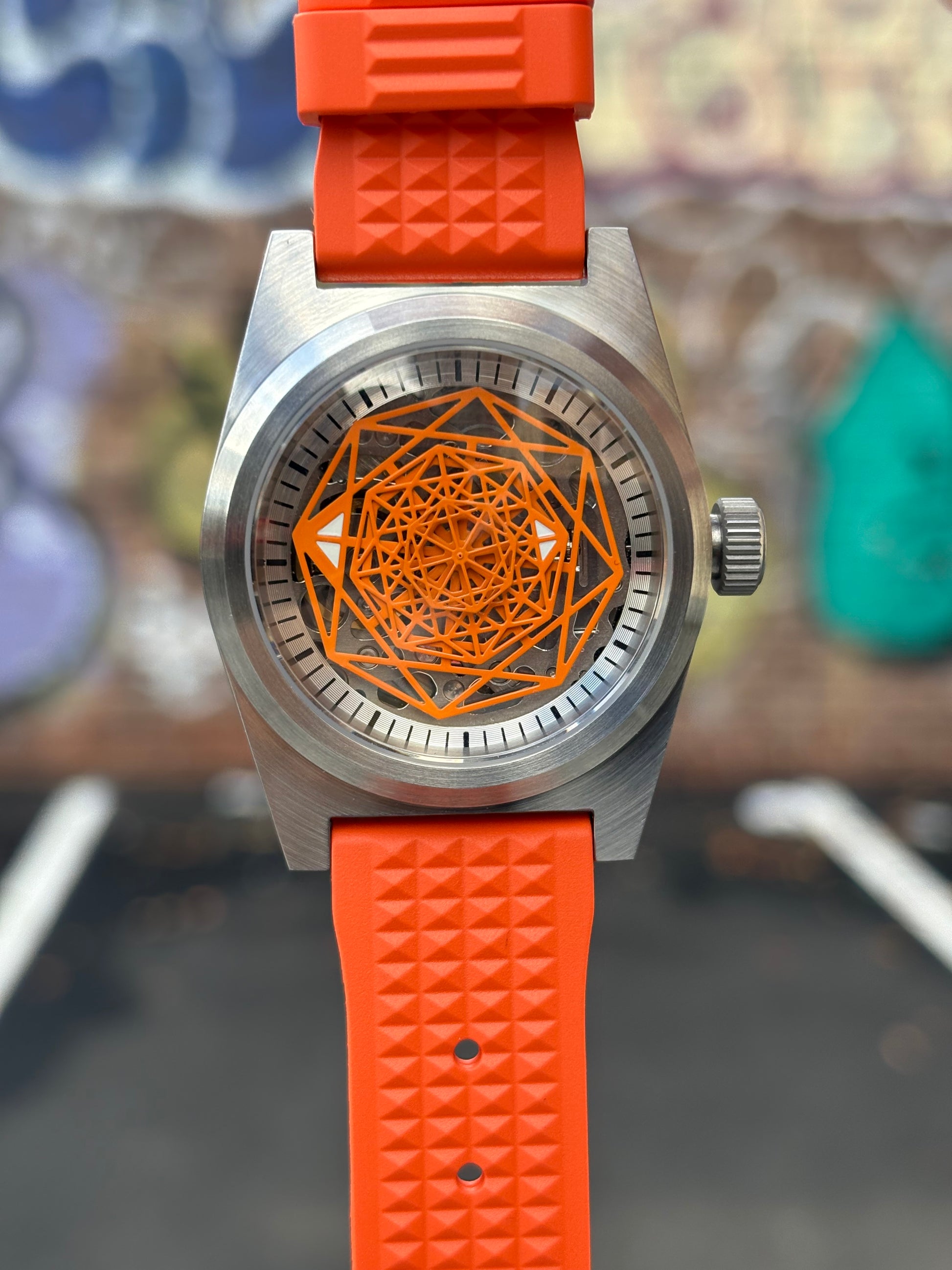 38mm Orange Sherbet Skeleton automatic - rubber strap